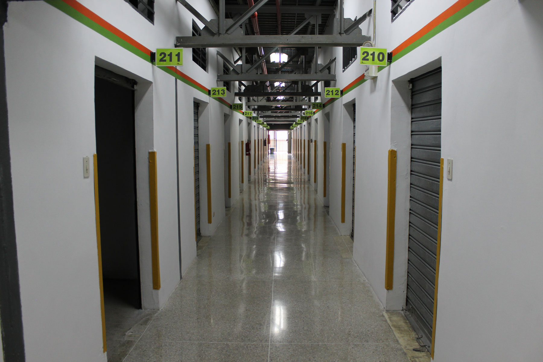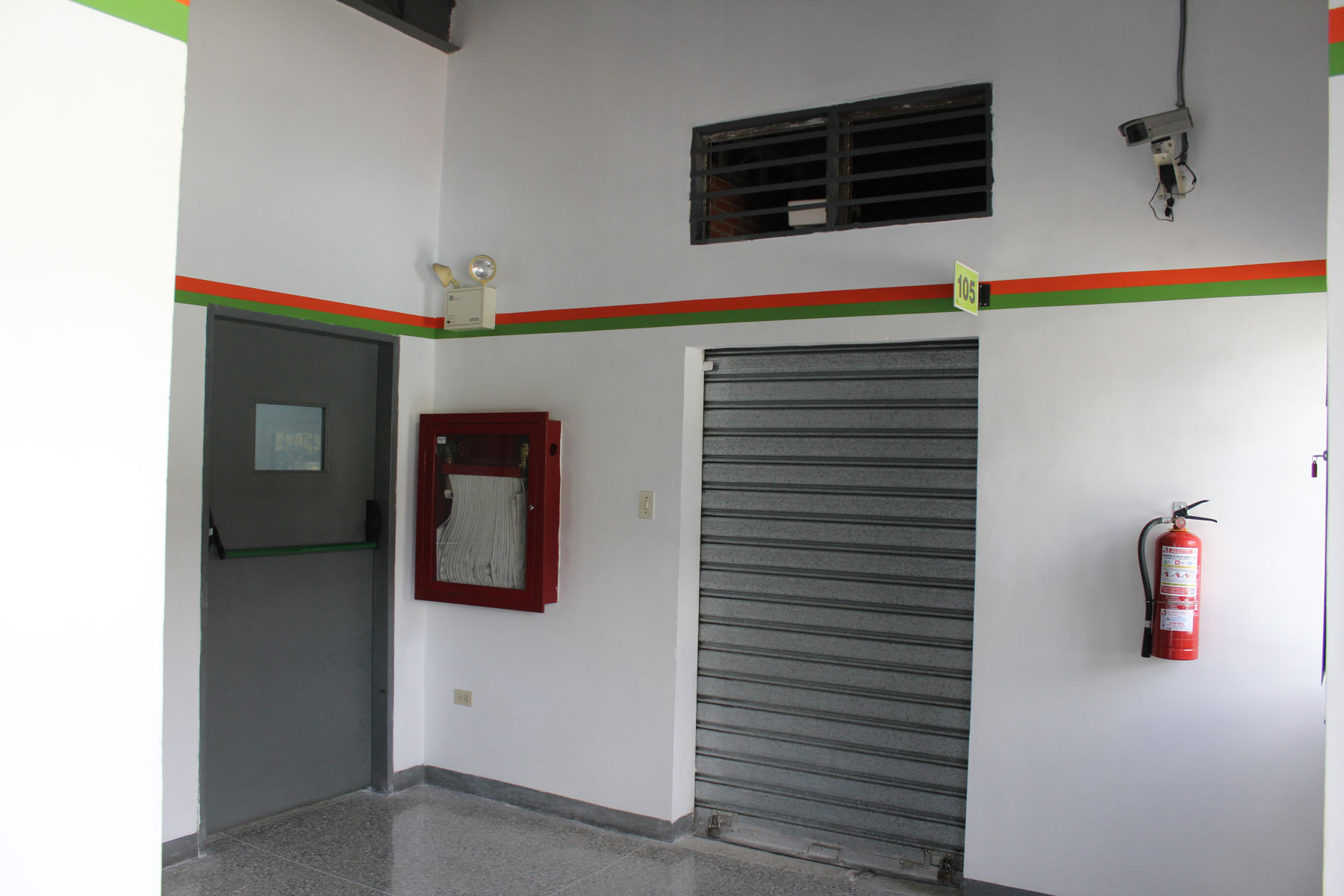 Extintores de espuma, puertas antipánico, escalera interna y de emergencia, Amplios pasillos