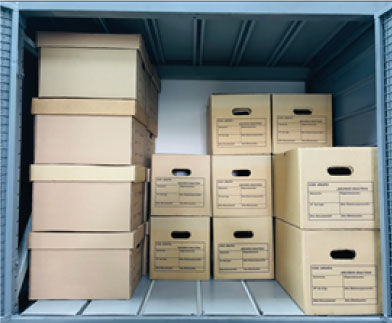 1) Cajas standard de archivo inactivo con tapa suelta (medidas en cms: L 40 x an 32 x al 27). Aprox. 24 Cajas
